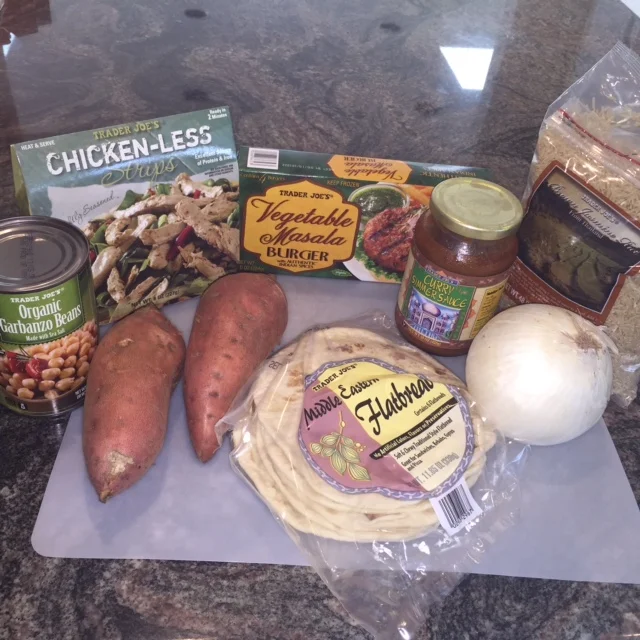 One of my TJ's favorites is the "Vegetable Masala Burger." Don't let the name fool you - it's nothing like a burger - think of it more like an "Indian potato pancake." We love this "burger" because it is ready in just 10 minutes and needs no additional seasoning. We have them as a side dish or put them in wraps for a little variety. You can find them in the freezer section of the store - be sure to check them out!