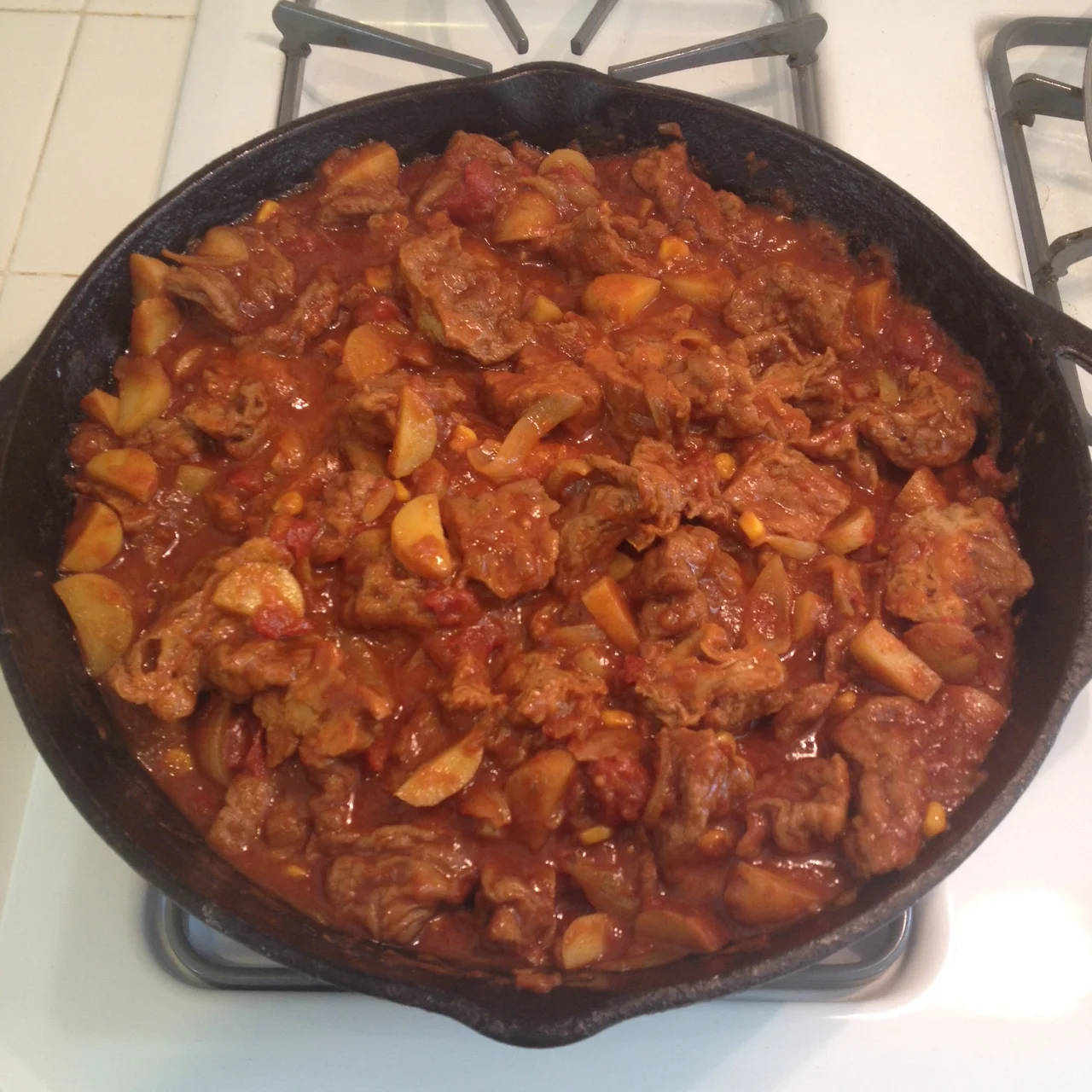 Step 2: Add the curry sauce and sweet corn chili (if you decided to use it), and the seitan. Mix well, cover, and let simmer for about 20 minutes.